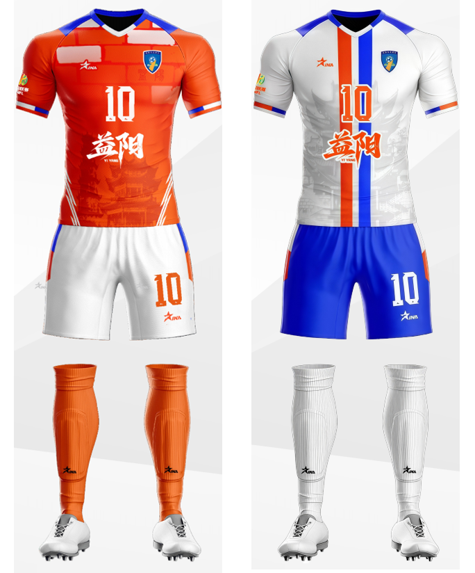 益阳队队服将益阳古城墙的文化基因与足球运动的活力感深度融合,既还原城墙的纵深感,又符合运动需求。