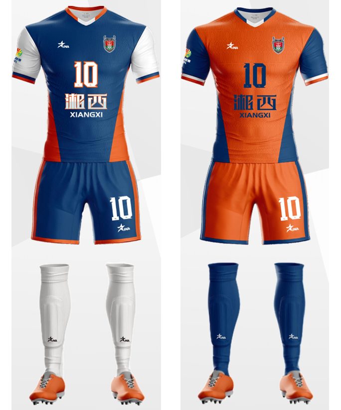 湘西州队队服以西兰卡普橙色与苗族靛蓝为底色,在民族文化传承与竞技精神表达的交融中,展现湘西队独特的地域气质与足球理想。